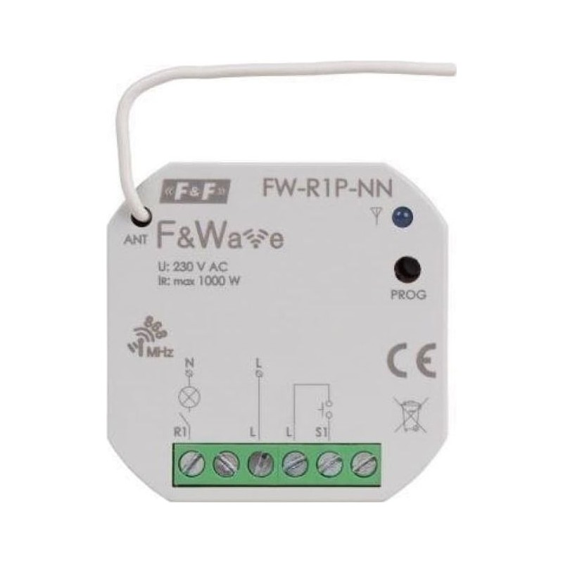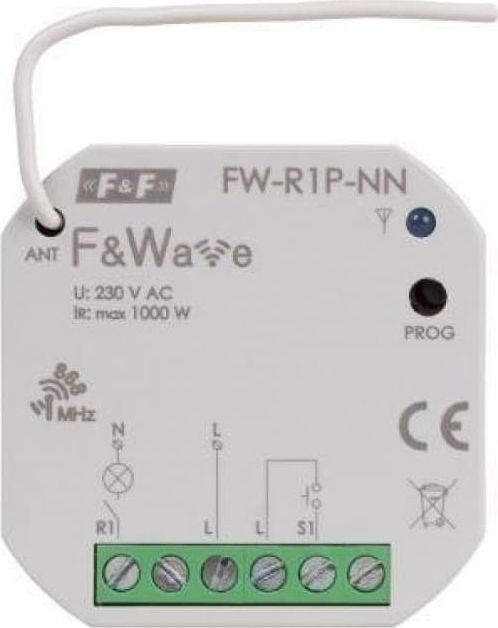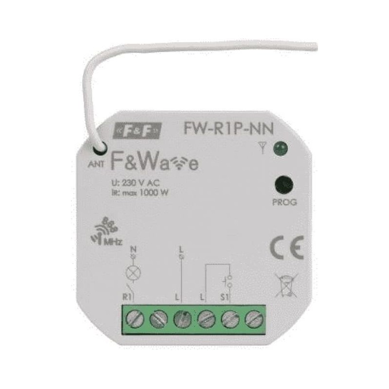 F&F Radiowy pojedyńczy przekaźnik wielofunkcyjny, do instalacji bez przewodu neutralnego F&Wave FW-R1P-NN