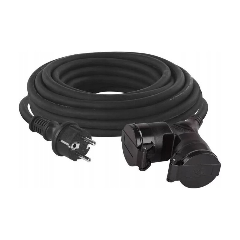 Przedłużacz IP44 czarny 10m - 2 gniazda