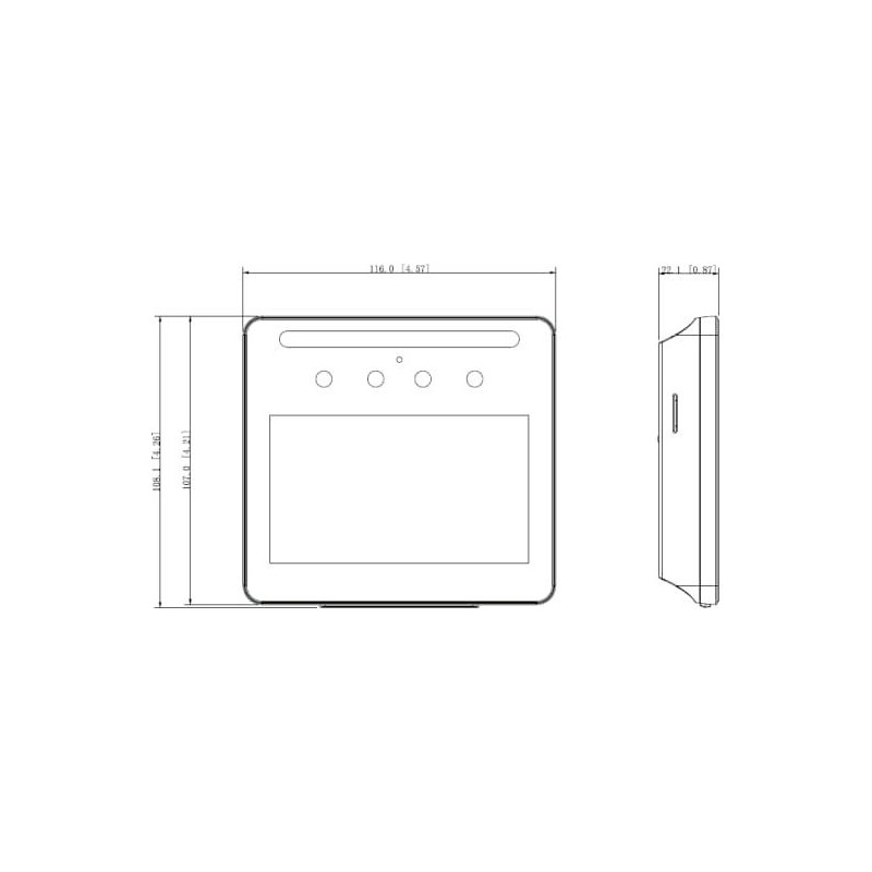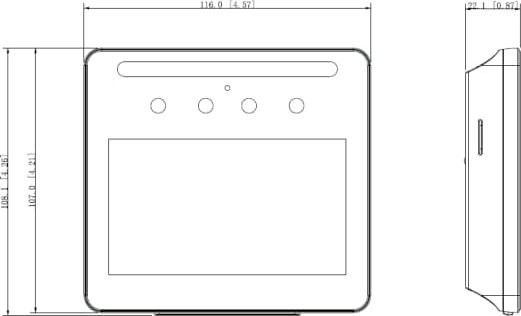 Przetwornik: CMOS Wielkość matrycy: 2 Mpx Rozdzielczość: 1920 x 1080 - 1080p Dane ogólne: Standard: TCP/IP Oświetlacz IR: Oświetlacz LED: Pomiar temperatury: Zakres pomiaru temperatury: Dokładność pomiaru temperatury: Odległość rozpoznawania twarzy: 0.3 m ... 1.5 m (max 1500 twarzy w bazie danych) Wbudowany czytnik zbliżeniowy RFID: