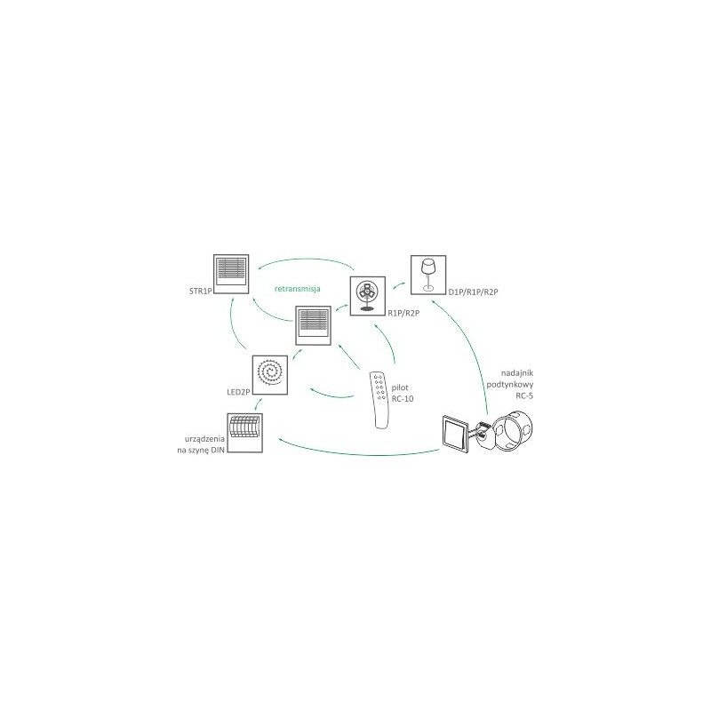 - Retransmisja rozkazów z nadajnika - możliwość zwiększenia zasięgu zdalnego sterowania;