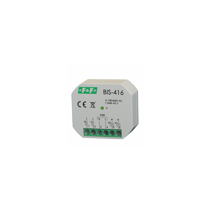 F&F Przekaźnik bistabilny BIS-416 podtynkowy, dwa niezależne obwody sterowania