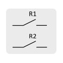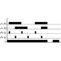 - Impuls na wejściu S1 steruje wyjściem R1. Analogicznie działa para wejścia S2 i wyjścia R2.
