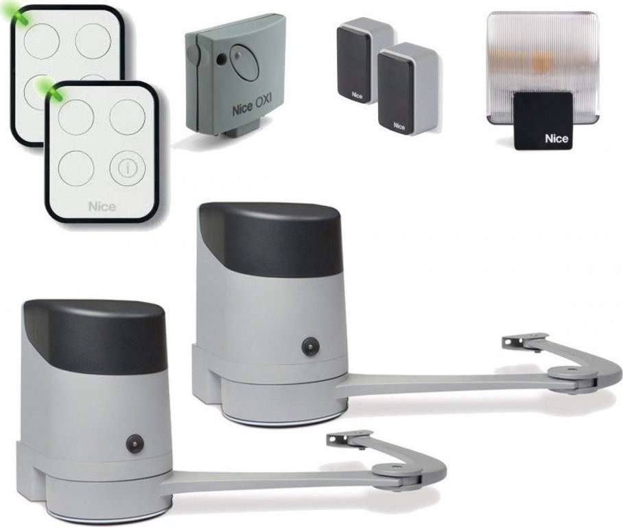NICE HOPP to kompletny zestaw dedykowany do automatyzacji bram skrzydłowych o długości skrzydła do 2,4 i wadze do 250 kg.