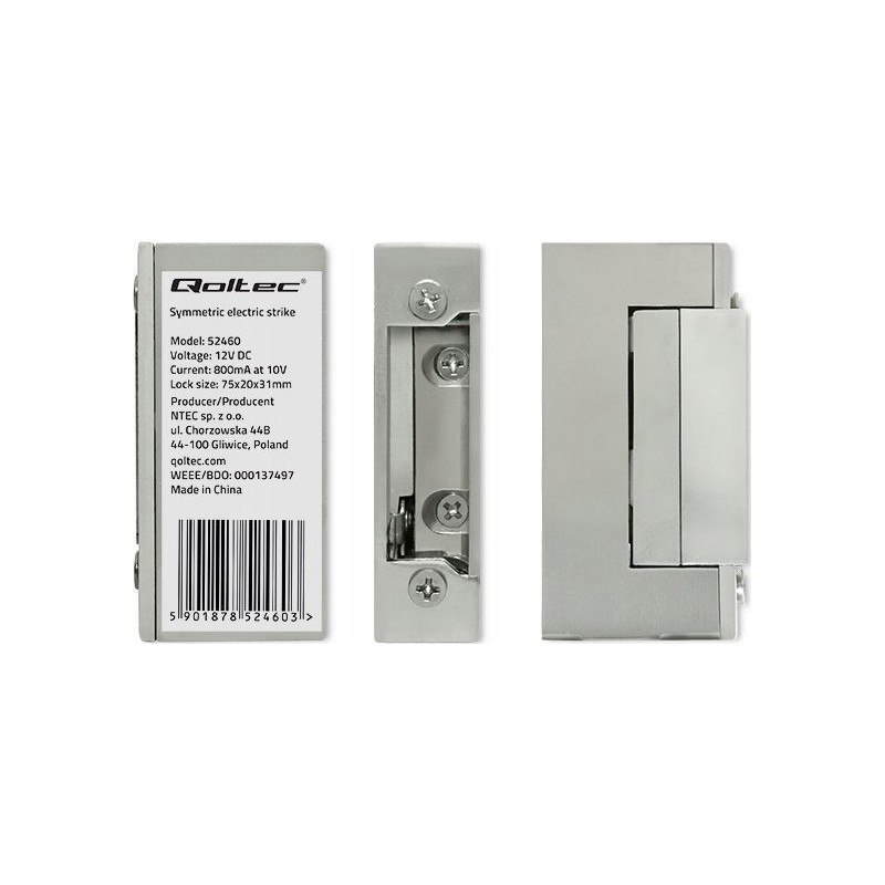 Qoltec Elektrozaczep Qoltec symetryczny bez pamięci i blokady | 12V | Stal nierdzewna