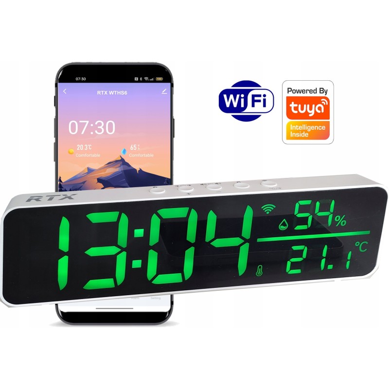 RTX Duży Zagar LED Czujnik Sensor Temperatury i Wilgotności WiFi Tuya
