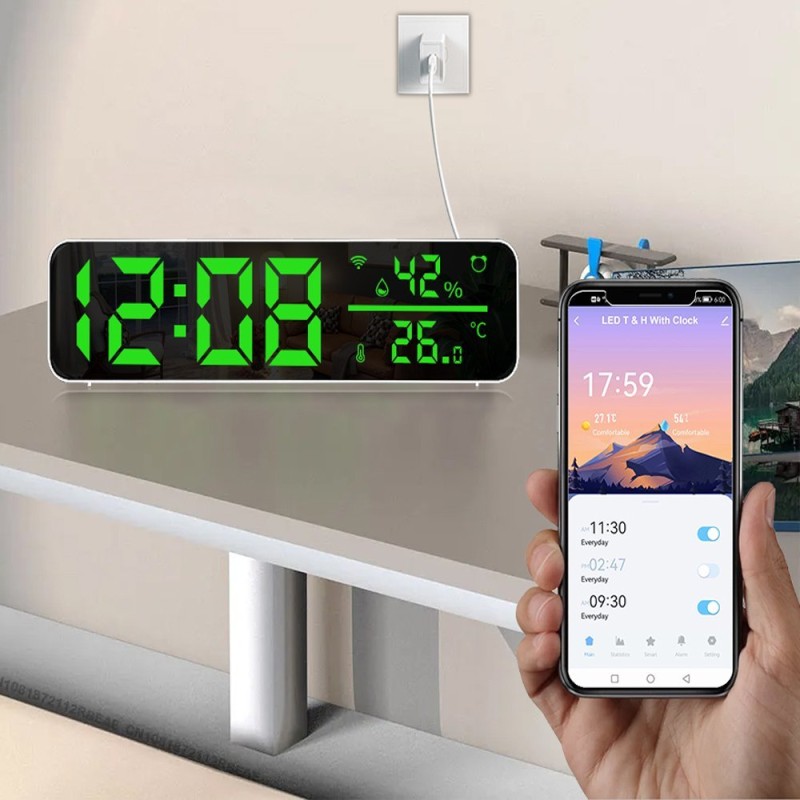 Świetny zegar LED z czujnikiem temperatury i wilgotności