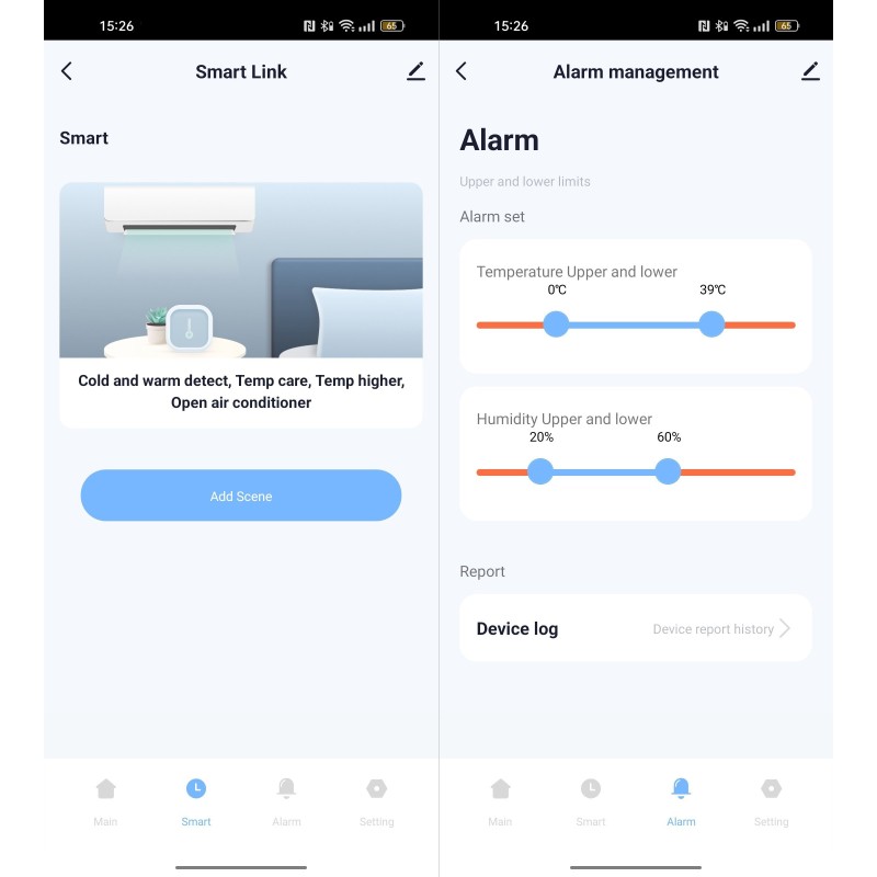 Użytkownik może być poinformowany w aplikacji o przekroczeniu wcześniej ustawionego zakresu temperatury lub wilgotności