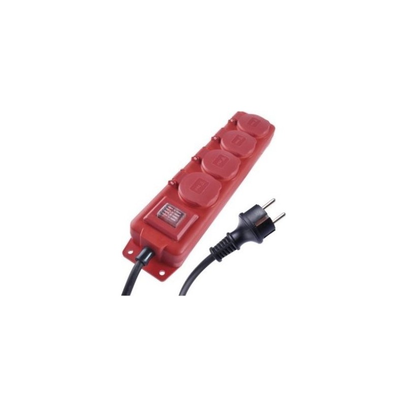Czerwony przedłużacz ogrodowy Emos to wysokiej jakości rozwiązanie, które się przyda w miejscu, do którego brakuje stacjonarnego gniazda. Przedłużacz ogrodowy posiadakabel o długości 5m i przekroju 1,5mm2. Produkt jest wyposażony w 4 gniazda z uziemieniem oraz przełącznik on/off. Do przedłużacza można podłączyć urządzenia o maksymalnym obciążeniu do 3680W. Przedłużacz o stopniu ochrony IP44 jest wykonany z tworzywa sztucznego i gumy w kolorze czerwonym . Gniazda w hermetycznym przedłużaczu mają przesłony torów prądowych. Model sprawdzi się w pomieszczeniach gospodarczych czy jako przedłużacz do garażu czy piwnicy.