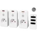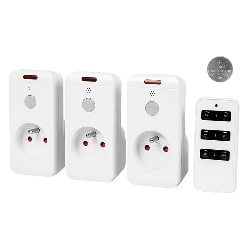 Zestaw trzech gniazdek zdalnie sterowanych w komplecie z pilotem umożliwiającym włączenie oraz wyłączanie zasilania w odległości do 30 metrów od gniazdka. Dzięki temu zestawowi nie będziemy musieli każdorazowego odłączać wtyczki z gniazda - wszystkim będziemy zarządzać za pomocą pilota nie ruszając się z miejsca. Za jego pomocą możemy sterować m.in. urządzeniami AGD, RTV, klimatyzatorami, wentylatorami, oświetleniem oraz każdym innym urządzeniem elektrycznym.