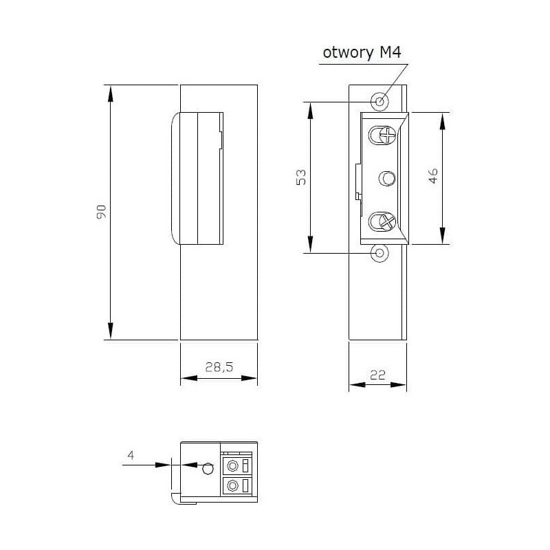 - Wymiary zaczepu: 22 x 28 x 90 mm
