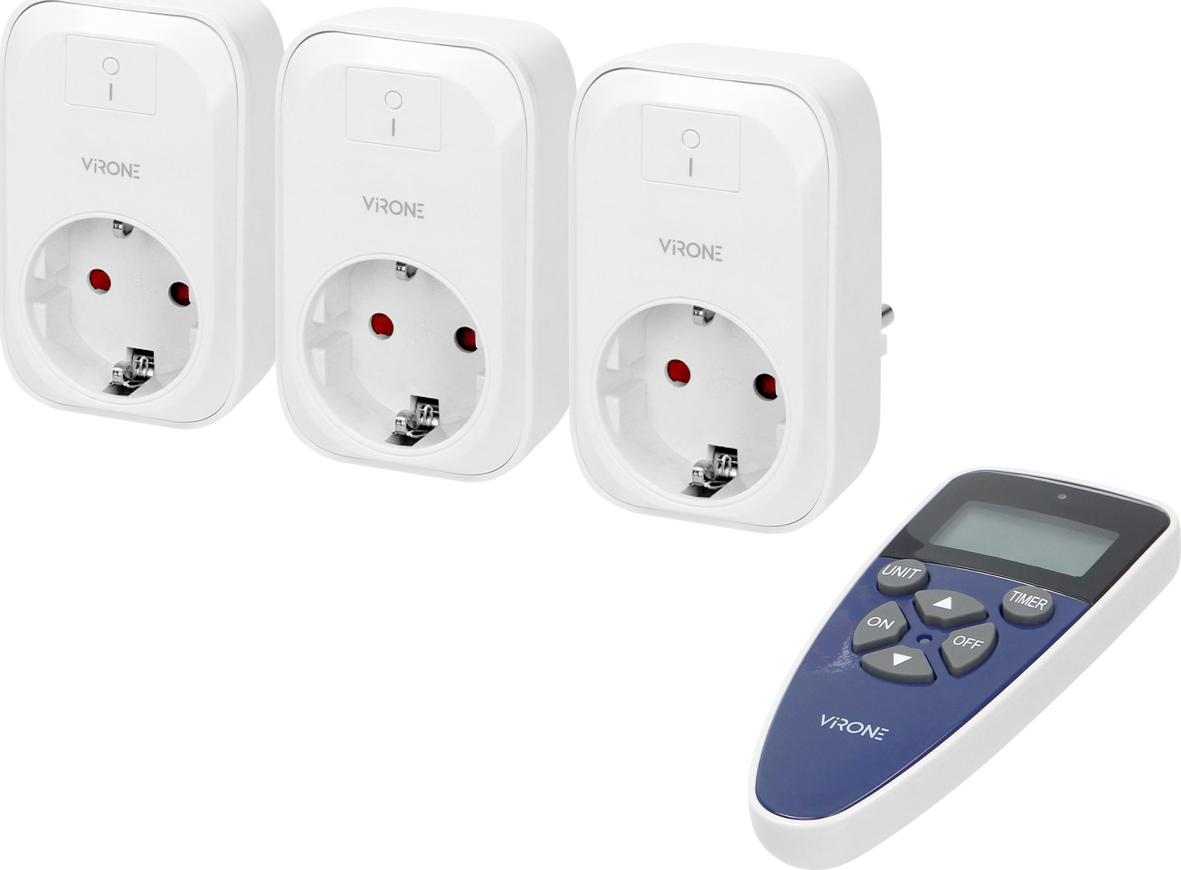 Zestaw gniazd bezprzewodowych sterowanych pilotem z funkcją timera 3+1, Schuko
