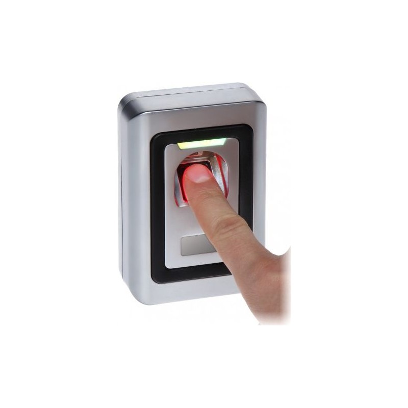 .Wewnętrzny, autonomiczny czytnik linii papilarnych i kart RFID.. .Autonomiczna praca urządzenia umożliwia użytkownikowi:.. .. Otwarcie za pomocą karty lub odcisku palca. .. Zapamiętanie zapisanych kart i wzorów linii papilarnych. .. Sygnalizację ...