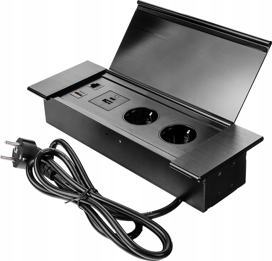Gniazdo jest łatwe w montażu i idealnie wpasowuje się w każdy blat, zachowując estetykę i porządek w przestrzeni roboczej.