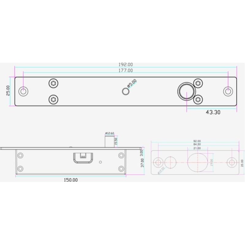 | Wymiary elektrozamka | 192 x 25 x 37 mm |