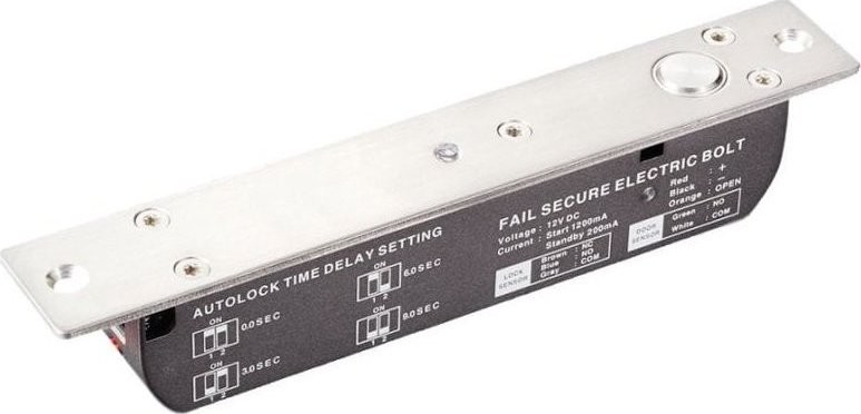 Elektrozamki trzpieniowe SCOT są alternatywą dla powszechnie stosowanych w systemach kontroli dostępu elektrozaczepów lub też ich uzupełnieniem w przejściach wymagających dodatkowego zabezpieczenia elektromechanicznego. Elektrozamek trzpieniowy składa się z elementu wykonawczego zawierającego elektromagnes który pod wpływem przyłożonego napięcia wypycha lub cofa ruchomy trzpień (w zależności od typu elektrozamka). Element główny montowany jest w ramie lub na ramie drzwi. Ruchomy trzpień wchodząc w przygotowany otwór w skrzydle drzwi blokuje je przed otwarciem. W zależności od modelu elektrozamka maksymalny nacisk na drzwi przy którym trzpień może zostać zerwany to 800, 1000 lub 2000 kg. Elektrozamki trzpieniowe występują zarówno w wersji standardowej (NC - drzwi zamknięte bez napięcia), jak i w w wersji rewersyjnej (NO - drzwi otwarte bez napięcia, drzwi zabezpieczone po podaniu napięcia). Dodatkowe uchwyty montażowe typu „S”, „U” pozwalają na montaż elektrozamka nawierzchniowo lub zastosowaniu go do wabezpieczenia drzwi szklanych. Elektrozamek trzpieniowy wyposażony jest w system atomatycznego zamykania. Jeżeli po zadziałaniu sygnału sterującego i zwolnieniu elektrozamka drzwi nie zostaną fizycznie otwarte - po upływie ok. 5-9 sekund od zakończenia impulsu sterującego ponownie zostaną zaryglowane. Elektrozamek trzpieniowy wyposażony jest w styk NO, który może być wykorzystany w systemie kontroli dostępu informując o położeniu sterowanych drzwi. Styk pozostaje zwarty jeżeli skrzydło drzwi znajduje się bezpośrednio w ościeżnicy (płytka z magnesem znajduje się pod elektrozamkiem - sygnał niezależny od stanu napięcia) . Dzięki temu możemy przekazać informację np. do systemu alarmowego, informując o stanie drzwi. Na obudowie zwory znajduje się dioda informująca o stanie wejścia. Jeżeli drzwi są zablokowane, jest to sygnalizowane czerwonym kolorem diody – jeżeli drzwi zostaną odblokowane lub cewka elektrozamka nie jest zasilana – dioda jest wygaszona. Jest to dodatkowe wyjście synalizacyjne (styk NO/NC) działające tak jak dioda sygnalizacyjna LED. Styk NO pozostaje zwarty podczas odblokowania drzwi (dioda nie świeci), rozwarty jeżeli drzwi są zablokowane (dioda świeci na czerwono) lub w przypadku braku napięcia. Styk NC pozostaje rozwarty podczas odblokowania drzwi (dioda nie świeci), zwarty jeżeli drzwi są zablokowane (dioda świeci na czerwono) lub w przypadku braku napięcia. Elektrozamek ma możliwość ustawienia opóźnienia czasowego po którym elektrozamek zarygluje drzwi. Czas ten można ustawić na mikroprzełącznikach na obudowie elektrozamka. Możliwe ustawienia: 0 / 3 / 6 / 9 sekund zwłoki po fizycznym zamknięciu drzwi.