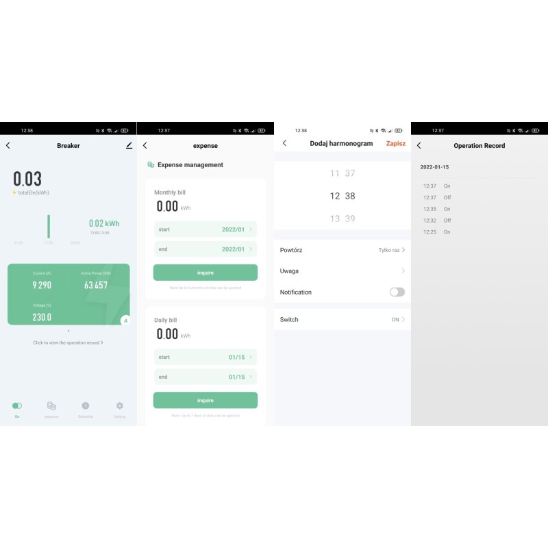 Pomiary są zapisywane na serwerze Tuya, co pozwala na sprawdzanie poziomu zużycia energii codziennie lub miesięcznie - archiwizacja danych z całego roku.