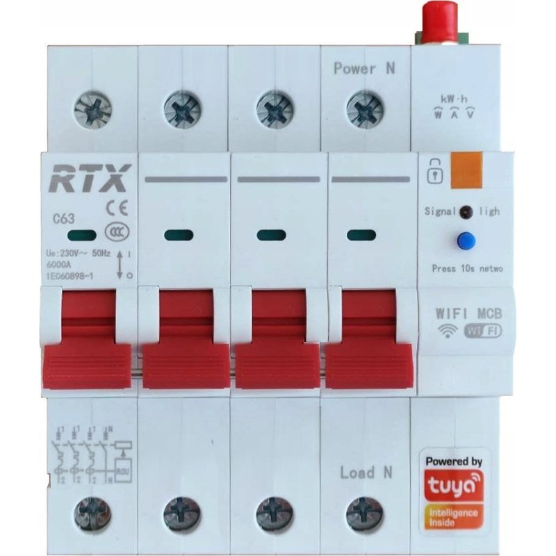 RTX Bezpiecznik 3 Fazy 63A WiFi Tuya Pomiar Energii