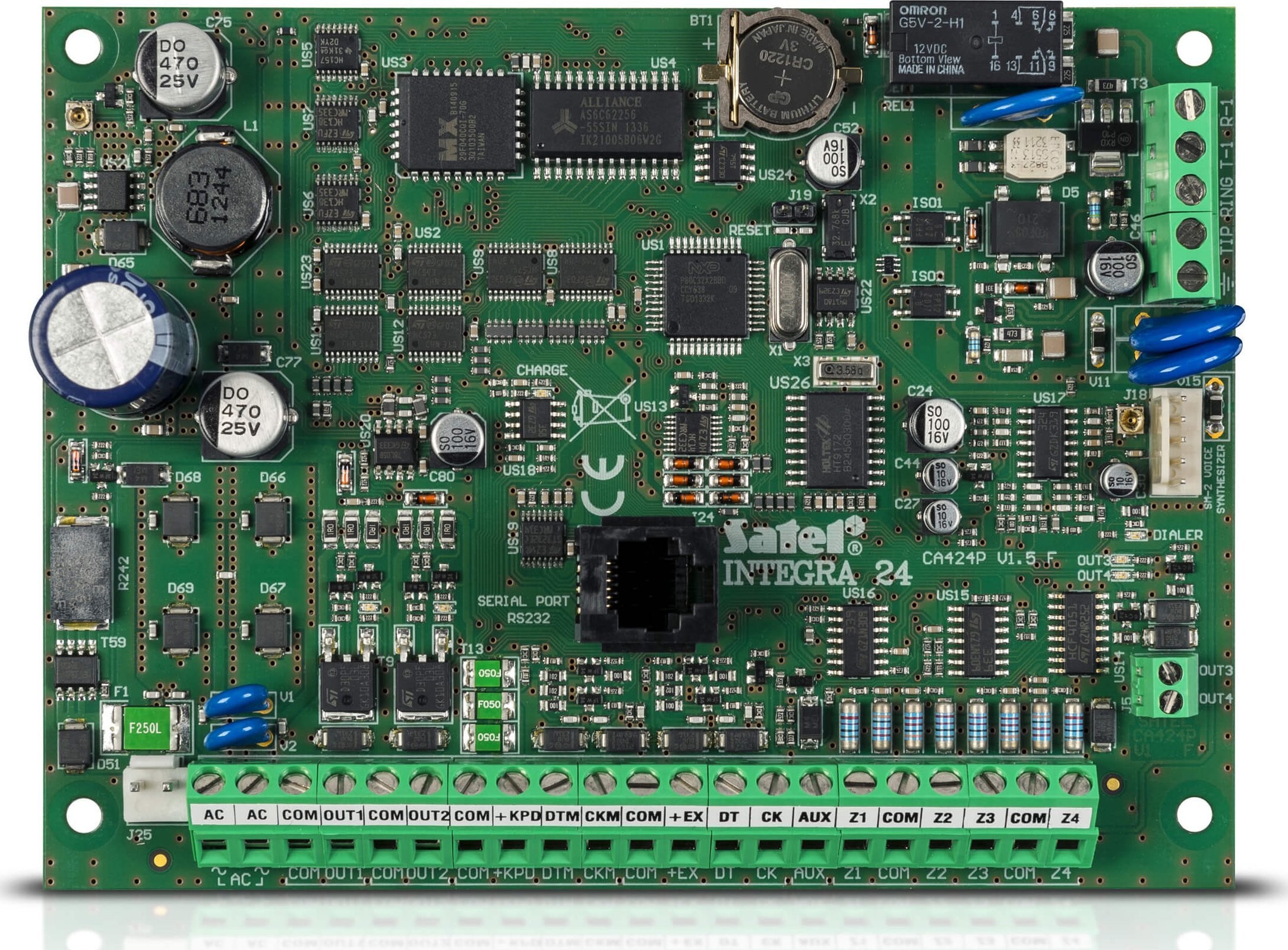 Płyta główna centrali alarmowej INTEGRA 24 firmy SATEL.