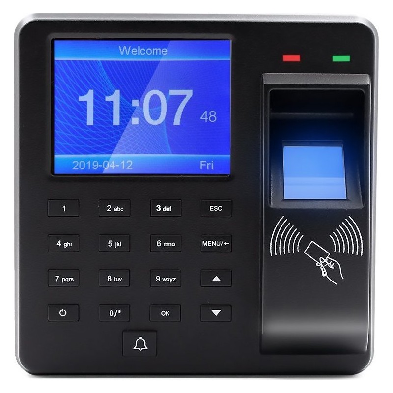 Rejestrator czasu pracy CTR10 to wielofunkcyjny produkt. Poza jego główną funkcją, jaką jest ewidencja czasu pracy, służy również do kontroli dostępu do pomieszczeń i budynków. Rejestrator umożliwia zapisanie w pamięci wewnętrznej do 1000 pracowników oraz aż 100 000 logów. Urządzenie automatycznie przypisuje dane konkretnego pracownika bez względu na to, który sposób weryfikacji wybrał. Dzięki temu urządzenie sprawdzi się w każdej firmie mniejszej, jak i większej. Tak duża pojemność zdarzeń wystarcza na minimum cały miesiąc roboczy. Zapewnia to również ciągłe i sprawne zarządzanie czasem pracy w każdym przedsiębiorstwie. Ewidencjonowanie czasu pracy odbywa się za pomocą potrójnej weryfikacji, dzięki odciskom palców, 6-znakowego kodu dostępu oraz dedykowanej karty RFID. Każdy z użytkowników może dodać aż 3 różne odciski palców. Jest to połączenie maksymalizacji bezpieczeństwa oraz wygody. Przyjemne używania produktu to zasługa wyraźnego ekranu LED 2.4 cala. Wszystkie funkcje rejestratora są obsługiwane z poziomu urządzenia. Na tym poziomie można również dokonywać zmian takich jak harmonogram pracy, czas zmian czy też ustawienia działów firmy.