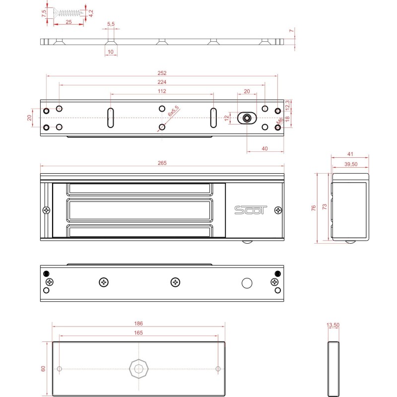 Zwory elektromagnetyczne SCOT są alternatywą dla powszechnie stosowanych w systemach kontroli dostępu elektrozaczepów. Zwora składa się z elementu wykonawczego zawierającego elektromagnes, montowanego na ramie drzwi, oraz metalowej płytki, umieszczanej na skrzydle drzwi. Zasilona cewka elektromagnesu przyciąga płytkę zabezpieczając w ten sposób wejście. W zależności od modelu zwory maksymalny nacisk na drzwi przy którym elektromagnes przyciąga metalową płytkę wynosi 180, 280, 350, 540 kg. Zwory elektromagnetyczne stosuje się w systemach kontroli dostępu zamiennie z elektrozaczepami rewersyjnymi, czyli tam, gdzie przepisy bezpieczeństwa wymagają otwarcia drzwi po zaniku napięcia w systemie kontroli: wyjściach ewakuacyjnych, przeciwpożarowych, budynkach użyteczności publicznej. Zwora elektromagnetyczna nie posiada ruchomych elementów mechanicznych, przez co praktycznie nie występuje zużycie elementów urządzenia. Z tego względu stosowana jest w miejscach o dużym natężeniu ruchu, gdzie kontrolowane drzwi są często otwierane, eliminując konieczność stałej konserwacji. Dodatkowe uchwyty montażowe typu „L”, „ZL”, „UL” pozwalają na montaż zwory praktycznie na każdych drzwiach. Podwójna zwora DUAL umożlwia równoczesne lub niezależne otwieranie skrzydeł drzwi dwuskrzydłowych. Zwora elektromagnetyczna wyposażona jest w przekaźnik NC, który może być wykorzystany w systemie kontroli dostępu informując o otwarciu / zamknięciu sterowanych drzwi. Dzięki temu możemy przekazać informację np. do systemu alarmowego, informując o stanie drzwi. Na obudowie zwory znajduje się dwukolorowa dioda informująca o stanie wejścia. Jeżeli drzwi są zamknięte, jest to sygnalizowane zielonym kolorem diody – jeżeli drzwi zostaną otwarte lub będą niedomknięte – dioda będzie świecić kolorem czerwonym. Jeżeli cewka zwory elektromagnetycznej nie jest zasilana (np. podczas trwania impulsu sterującego) – dioda jest wygaszona.