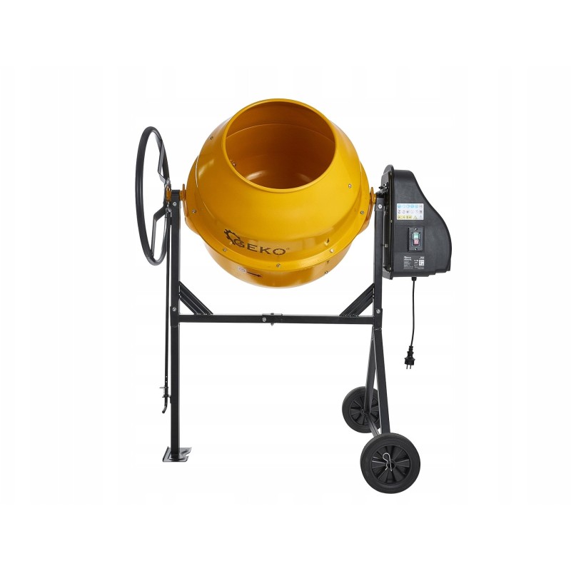 Betoniarka Geko została stworzona z myślą o długotrwałym użytkowaniu. Jej stabilna konstrukcja z wytrzymałej stali oraz solidny żeliwny wieniec gwarantują odporność na intensywną eksploatację. Bęben wykonany z grubej blachy stalowej, z wewnętrznymi łopatkami, zapewnia równomierne i efektywne mieszanie, co jest kluczowe dla uzyskania wysokiej jakości mieszanki.