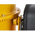 Duże koło sterujące umożliwia precyzyjne pozycjonowanie bębna, co jest niezwykle istotne podczas pracy. Dodatkowo, betoniarka posiada blokadę pochyłu dla zwiększenia bezpieczeństwa oraz wygodny panel sterowania z wyraźnie oznaczonymi przyciskami START/STOP.