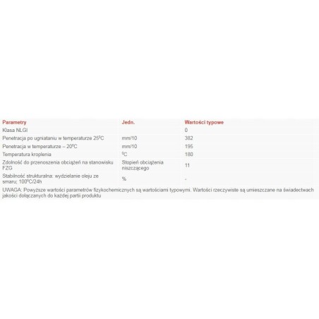 Smar do łożysk smar litowy LITEN EPX (17KG), -20/+100°C, DIN 51 502 GP0G-20, ISO 1769114/ 6743-9: BBEB-01, NLGI 0 269,10 zł Dodaj do koszyka