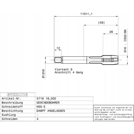 Ghring Machine tap GUHRING HSS-E 5716 DIN376 M16 x 2.0