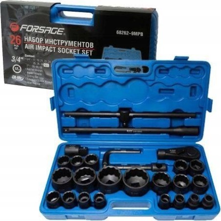 Zestaw narzędzi Forsage Zestaw narzędzi udarowych 26el. 3/4" (17-50mm) i 1" (55-65mm) (12-kątnych) 290,20 zł Dodaj do koszyka