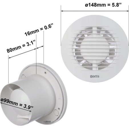 Household fan E-EXTRA EE100HT, DN100, with timer and humidity sensor