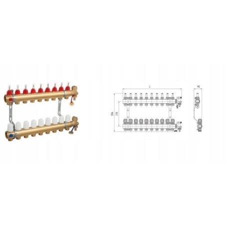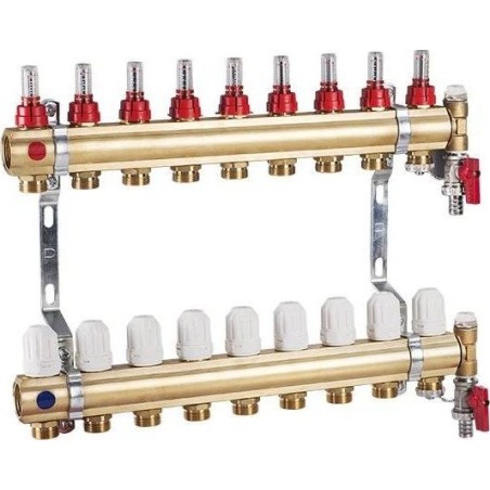 Perfexim Rozdzielacz mosiądz 5 obw. PHA-107 5-obwodowy PN6 z rotametrami, zaworami regualcyjnymi i nyplami, do ogrzewania płaszc 680,26 zł Dodaj do koszyka