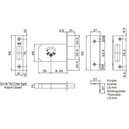 MORTISE LOCK KALE 156/F 5 KEYS