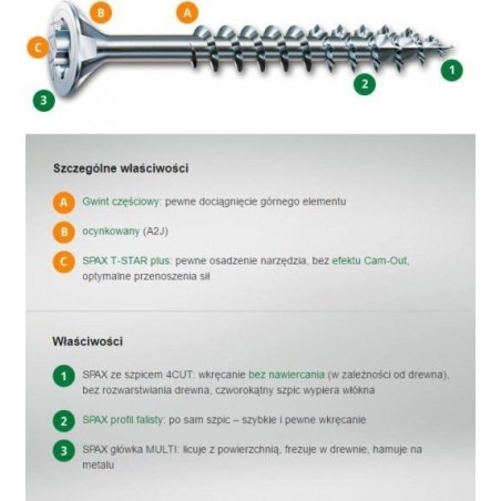 Spax WKRĘT DO DREWNA OCYNK BIAŁY (500) TXTG 4.0*60MM SPAX