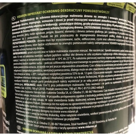 VIDARON Vidaron impregnat powłokotwórczy 5L dąb bielony ochronno-dekoracyjny 136,38 zł Dodaj do koszyka
