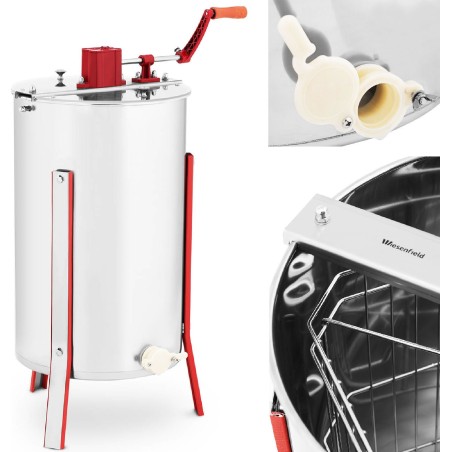 Wiesenfield Miodarka wirówka do miodu ręczna 3 ramkowa ze stali nierdzewnej Miodarka wirówka do miodu ręczna 3 ramkowa ze stali 642,70 zł Dodaj do koszyka