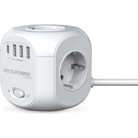 Realpower RealPower Steckdosenwürfel PowerBox 431 + 3xUSB-A / 1xUSB-C