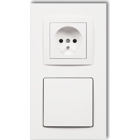 Łącznik schodowy z gniazdem hermetycznym Karlik Junior 30WGHP-3DP natynkowy z uziemieniem IP54 z przesłonami MIX pionowy klapka 53,46 zł Dodaj do koszyka