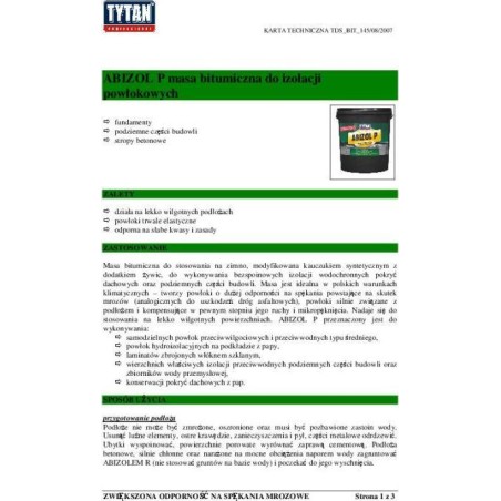 Tytan ABIZOL P TYTAN 18KG MASA BITUMICZNA DO IZOLACJI POWŁOKOWYCH [jm.SZT] - ABIZOL P18K 216,95 zł Dodaj do koszyka