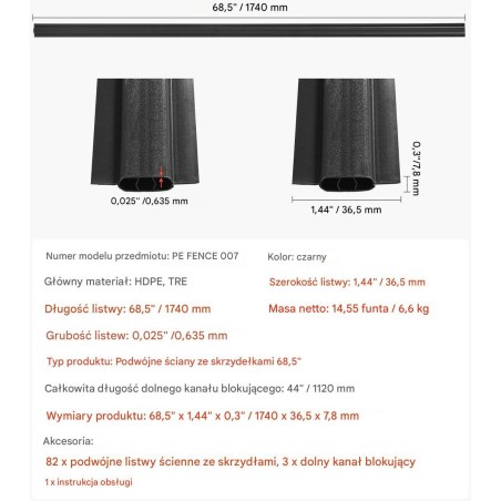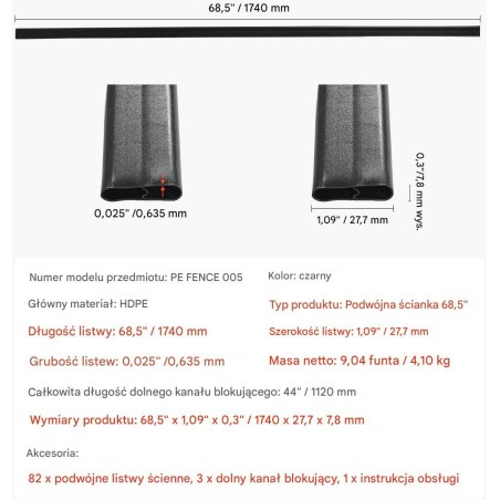 Listwy Ogrodzeniowe Pojedyncze 174 cm Prywatność, trwałość i łatwy montaż