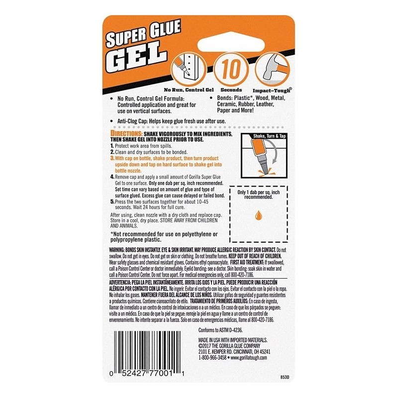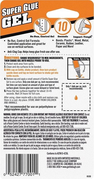 Dzięki temu niesamowitemu klejowi, który działa na drewnie, metalu, kamieniu, plastiku, gumie i wielu innych materiałach, niezależnie od tego, co trzeba naprawić, Gorilla Super Glue sprosta temu zadaniu.
