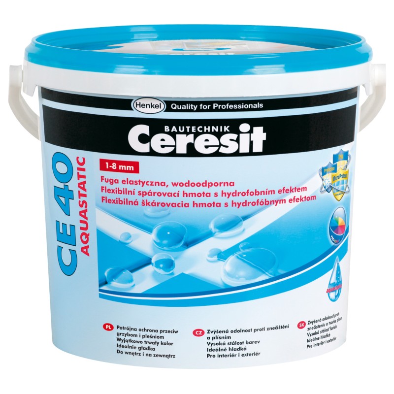 Zaprawa Ceresit CE 40 służy do spoinowania płytek gresowych, ceramicznych, szklanych oraz kamiennych (również marmurów), zarówno na powierzchniach pionowych i poziomych. Dzięki wysokiemu stopniowi hydrofobizacji spoin (efekt aquastatic) krople wody utrzymują się w formie perełek na powierzchni nie wsiąkając w jej strukturę. Zaleta ta umożliwia eksploatacje spoiny w miejscach szczególnie narażonych na okresowe działanie wody np. łazienki, prysznice, kuchnie. Może być stosowana wewnątrz i na zewnątrz budynków. Szczególnie polecana, gdy płytki mocowane są na podłożach odkształcalnych: ogrzewane podłogi, płyty wiórowe i gipsowo-kartonowe. CE 40 spełnia wymagania normy PN-EN 13888:2004 - klasy CG2 AW (zaprawa do spoinowania o podwyższonych parametrach, o zmniejszonej absorpcji wody). Wodoszczelność i odporność na oddziaływanie chemikaliów zapewnia stosowanie spoin Ceresit: CE 44, CE 47 i CE 48. Dylatacje między płytkami, spoiny w narożach ścian, w połączeniach ścian z posadzką i przy urządzeniach sanitarnych należy wypełnić silikonem Ceresit CS 25 a w przypadku spoinowania marmurów CS 29.