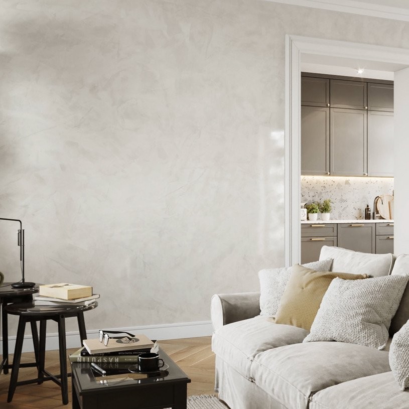 Plaster wyróżnia się unikalnym efektem polerowanego marmuru, co sprawia, że każde wnętrze nabiera luksusowego wyglądu. Jego estetyka przyciąga wzrok i dodaje elegancji, co czyni go idealnym rozwiązaniem do salonów, sypialni oraz biur.