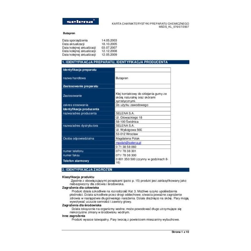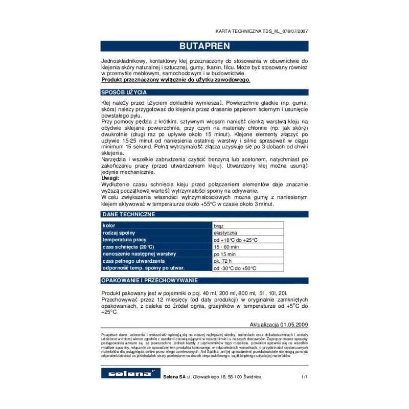 Jednoskładnikowy klej kontaktowy, przeznaczony do stosowania w obuwnictwie do klejenia
