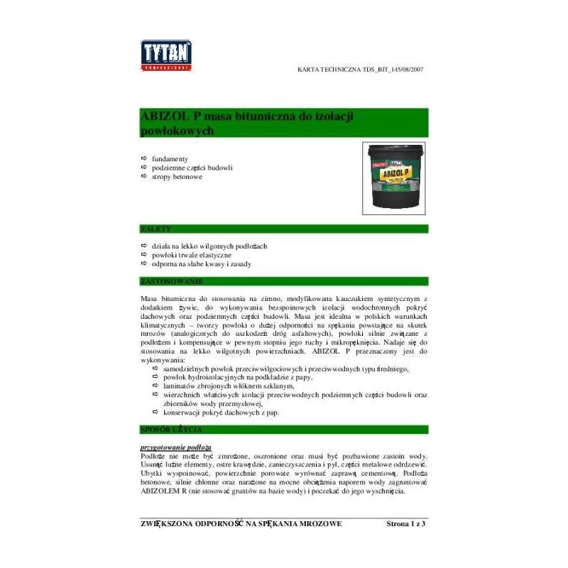 Tytan ABIZOL P TYTAN 18KG MASA BITUMICZNA DO IZOLACJI POWŁOKOWYCH [jm.SZT] - ABIZOL P18K