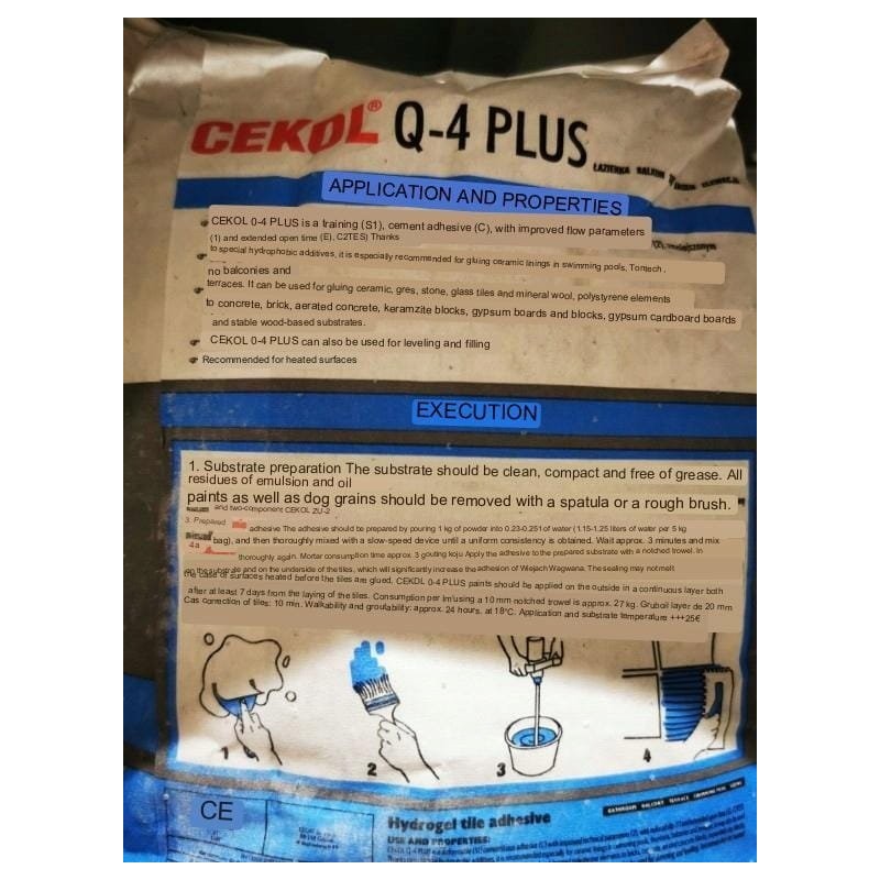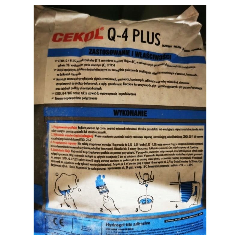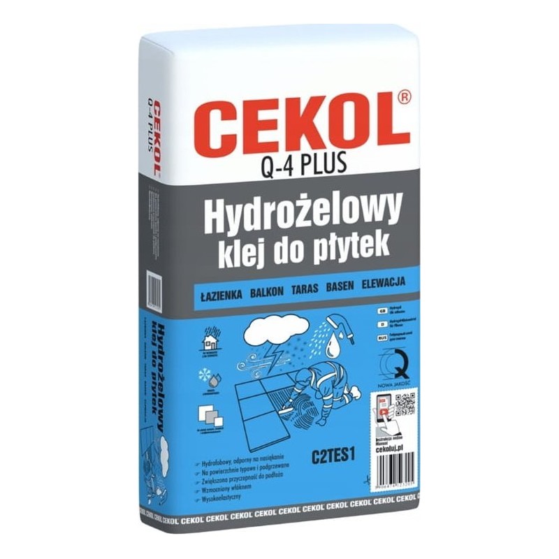 Klej cementowy z dodatkami hydrofobowymi, polecany szczególnie do mocowania płytek ceramicznych w basenach, fontannach, na balkonach i tarasach. Może być stosowany do przyklejania płytek ceramicznych, gresowych, kamiennych, szklanych, a także do mocowania wełny mineralnej i elementów styropianowych na podłożach betonowych, ceglanych, piaskowcowych, gazobetonowych, płyt gipsowo-kartonowych, a także na stabilnych podłożach drewnianych. KLEJ CEKOL Q-4 PLUS nadaje się również do wyrównywania i szpachlowania. Polecamy na podgrzewane powierzchnie.