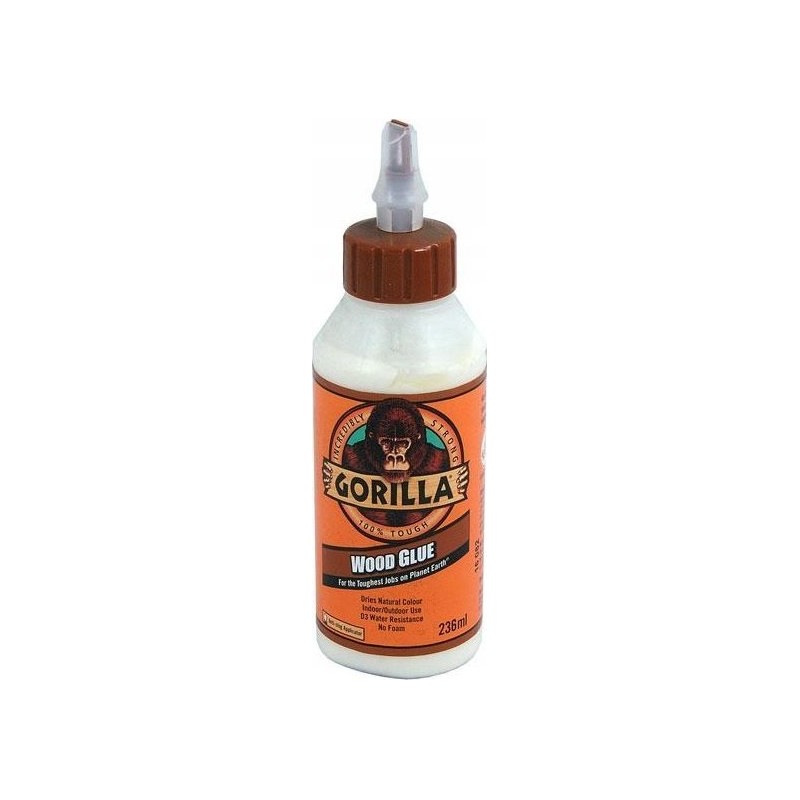 * Klej do drewna Gorilla jest odporny na wodę, ale nie jest wodoodporny. Oznacza to, że może być stosowany do projektów, które zostaną wystawione na działanie atmosferyczne, ale nie powinien być używany pod wodą lub w ziemi.
