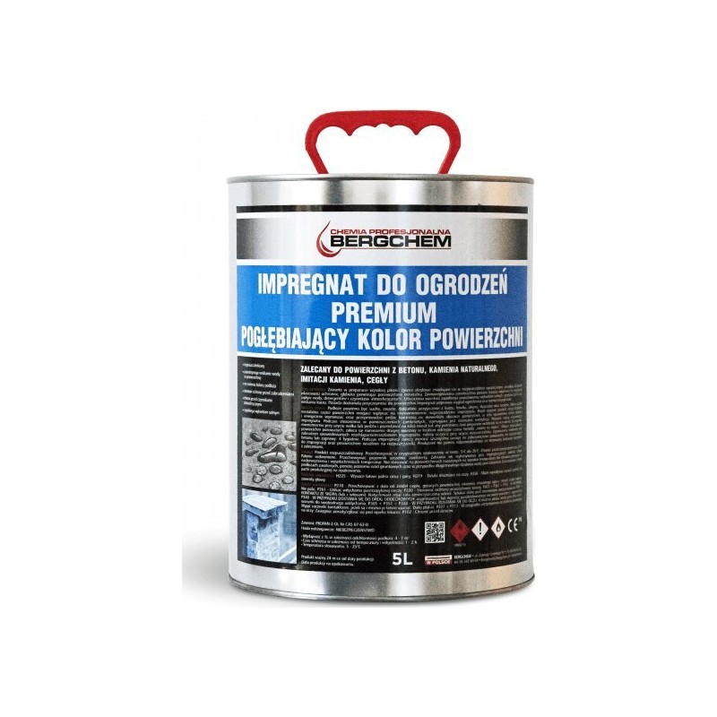 Impregnat do ogrodzeń PREMIUM 5L pogłębiający kolor powierzchni Opis produktu: Zawarte w preparacie wysokiej jakości żywice akrylowe znajdujące się w rozpuszczalniku ograniczanym, posiadają doskonałe właściwości ochronne, głęboko penetrując powierzchnie mineralną. Zaimpregnowana powierzchnia posiada wysoką odporność na negatywny wpływ wody, detergentów i czynników atmosferycznych. Utworzona warstwa zapobiega powstawaniu wykwitów solnych, grzybów, pleśni oraz wnikaniu. Posiada doskonałą przyczepność do powierzchni. Impregnat poprawia wygląd ogrodzenia oraz wzmacnia jego kolor. Sposób użycia: Podłoże powinno być suche, zwarte, dokładnie oczyszczone z kurzu, brudu, olejów, tłuszczów oraz wosków. Należy usunąć niestabilne części powierzchni mogące wpłynąć na nierównomierne rozprowadzenie impregnatu. Przed użyciem produktu należy dokładnie i energicznie wymieszać oraz przeprowadzić próbę kontrolną na niewielkim obszarze powierzchni w celu sprawdzenia efektu działania impregnatu. Podczas stosowania w pomieszczeniach zamkniętych, wymagana jest skuteczna wentylacja. Preparat należy rozprowadzić równomiernie przy użyciu wałka lub pędzla i pozostawić na kilka minut tak aby potrzebna ilość preparatu wchłonęła się w materiał. W przypadku powierzchni porowatych, zaleca się naniesienie drugiej warstwy w krótkim odstępie czasu metodą „mokre na mokre”. Miejsce niepożądanych zabrudzeń spowodowanych rozchlapaniem/rozlaniem impregnatu, należy oczyścić przy użyciu rozpuszczalnika. Ograniczenia: minimalny wiek betonu lub zaprawy: 4 tygodnie. Podczas impregnacji należy zwrócić szczególną uwagę na zabezpieczenie powierzchni nie przeznaczonych do impregnacji oraz powierzchnie wrażliwe na rozpuszczalniki. Producent...