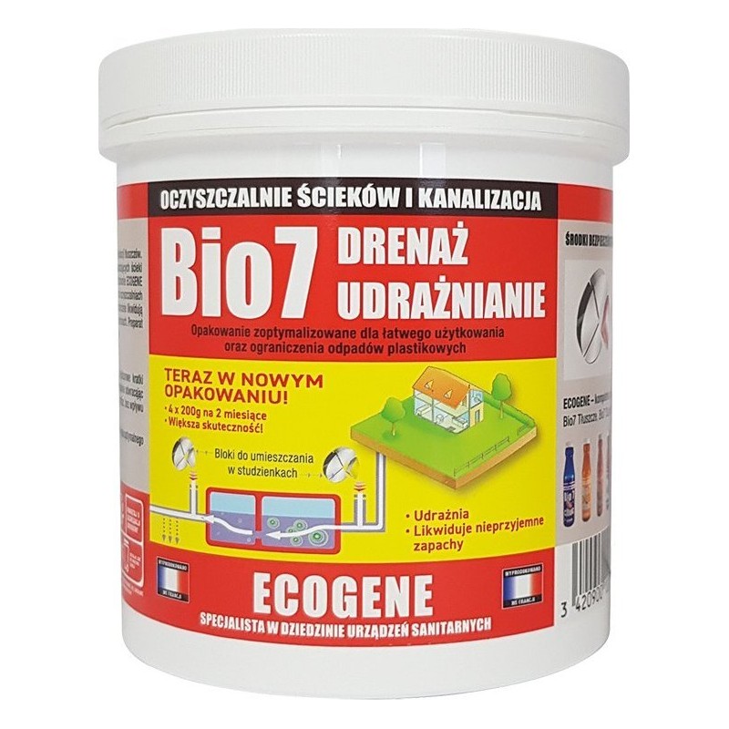 Preparat BIO7 DRENAŻ UDRAŻNIANIE 800G do studni chłonnych, drenażu i kanalizacji