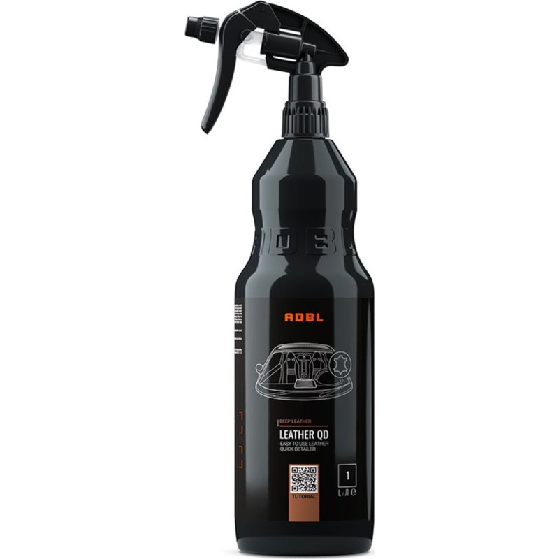 ADBL Leather QD – rewolucyjny produkt do bieżącego czyszczenia, pielęgnacji i konserwacji tapicerek wykonanych ze skóry lakierowanej. Doskonale usuwa zabrudzenia takie jak: ślady po kosmetykach, resztkach jedzenia i wszystkich innych, wynikających z codziennej eksploatacji. Siła czyszcząca jest tak dobrana, aby móc usuwać zabrudzenia za pomocą samej mikrofibry. Przy cięższych zabrudzeniach konieczne może być użycie szczotki ADBL Ther. Pozostawia idealne wykończenie każdej tapicerki skórzanej. Skóra po aplikacji i odparowaniu pozostałości produktu pozostaje przyjemna w dotyku, jednolicie matowa, bez widocznego przyciemnienia.