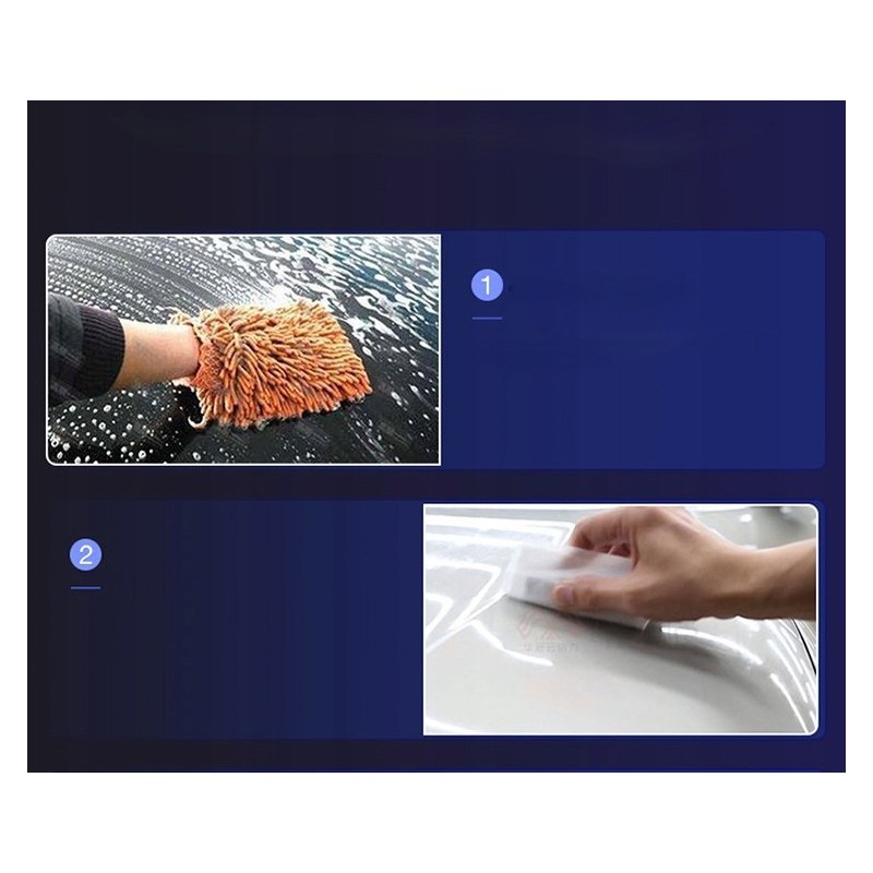 - Powłokę szklaną nakładamy gąbką dołączoną do zestawu. Gąbkę nasączamy powłoką (około 10 razy) i równomiernie rozprowadzamy na wybranej części samochodu.